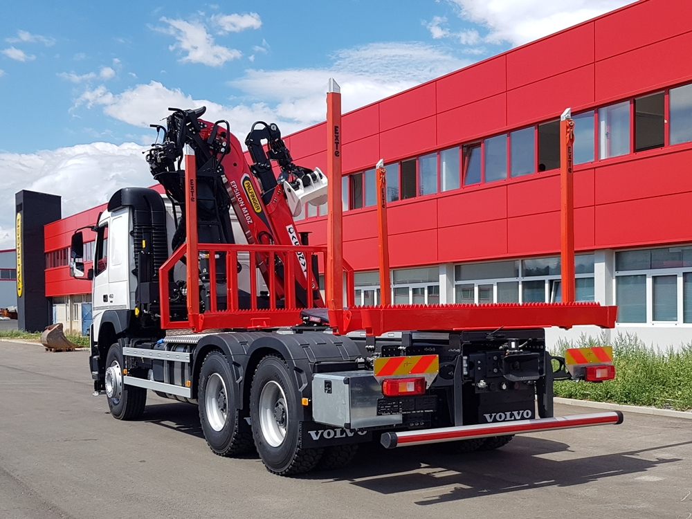 Kamionska nadogradnja za proizvođača drvenih stupova, tvrtku Proizvodnja Drvenih Stupova iz Karlovca. Na Volvo FMX montirana je Palfinger Epsilon dizalica M10Z91 dohvata 9,1m s Epsilon grabilicom FG53. Na kamion je montirana šumarska platforma bez poda s dva para čeličnih greda s čeličnim ExTe šticama 144.