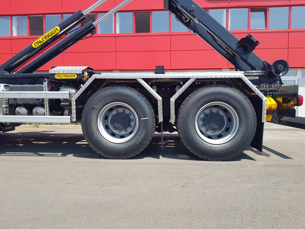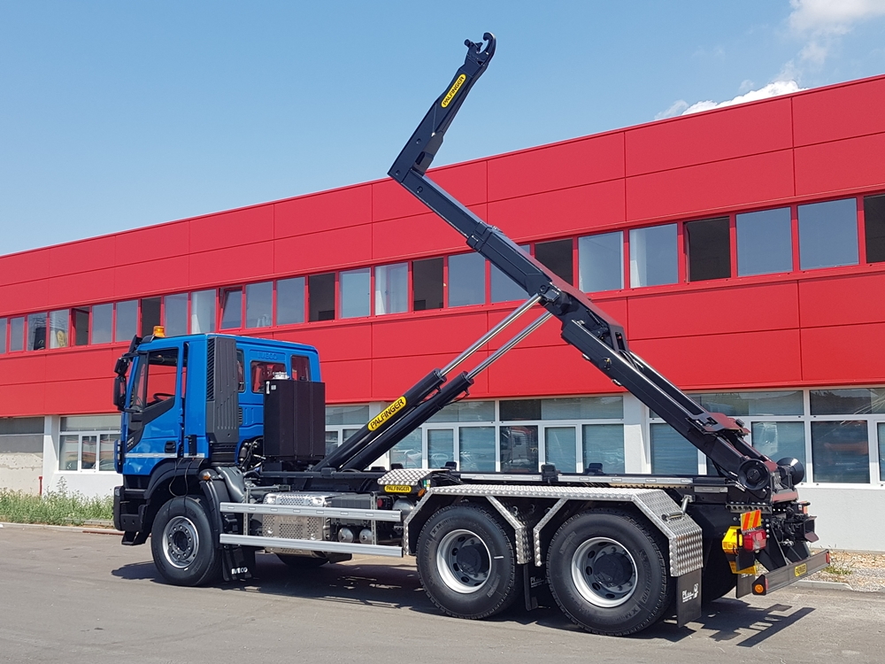 Palfinger navlakač kontejnera T26 montiran na Iveco Stralis AD260X48Z za obrt Kavro. Navlakač ima kapacitet 26t i može prevoziti kontejnere dužine do 8.000 mm. Navlakač ima mehaničko osiguranje kuke, stražnje vanjsko hidraulično zaključavanje kontejnera i SOFT stop opciju kojom se lagano spušta kontejner nakon ukrcaja i kipanja. Benefiti te opcije su što se štedi kamion, navlakač i kontejner od prekomjernog trošenja prilikom naglih spuštanja.