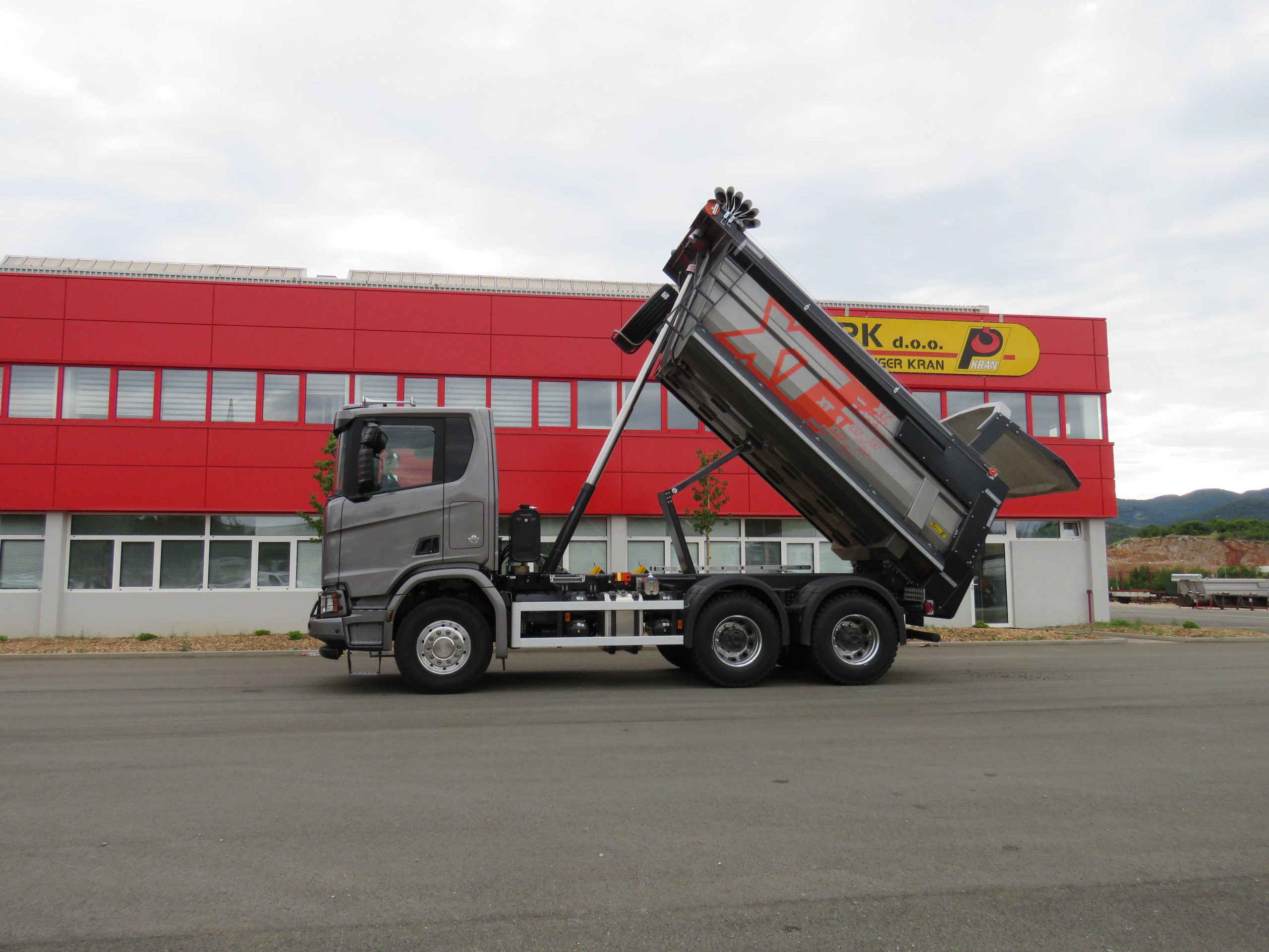 Isporuka stražnjeg half-pipe kipera HP 200 HD za građevinsku tvrtku Dangubić d.o.o. Radi se o heavy duty kiperskoj nadogradnji volumena 16 m3 s hidraličnim “bulb” vratima konstruiranim za dodatni volumen. Kiperska nadogradnja u potpunosti je konstruirana i proizvedena u tvrtki PK. Kiper ima ceradu na daljinsko upravljanje. Kiperska nadogradnja montirana je na Scania R 650 B6x4. Na stražnjem [...]
